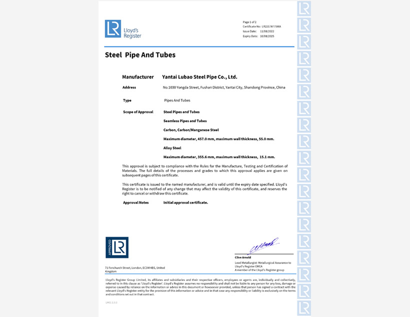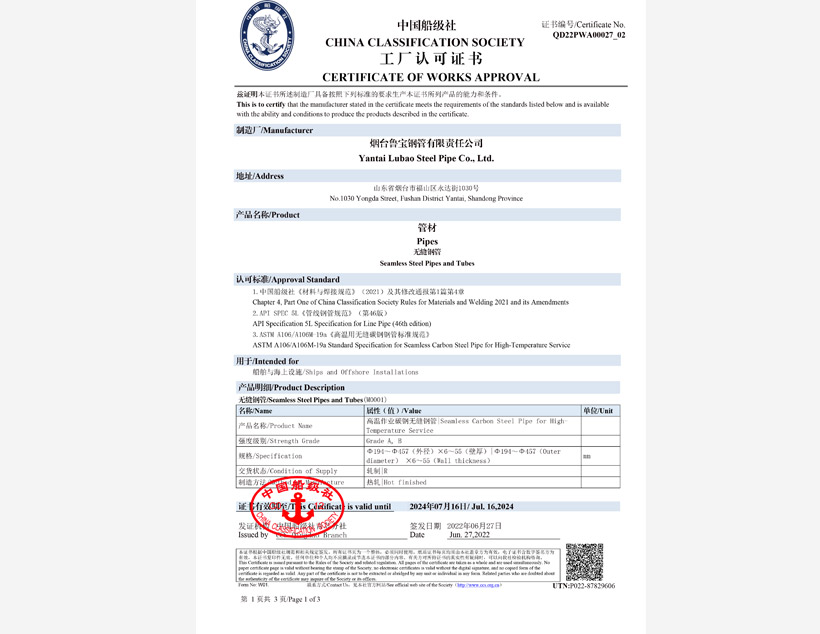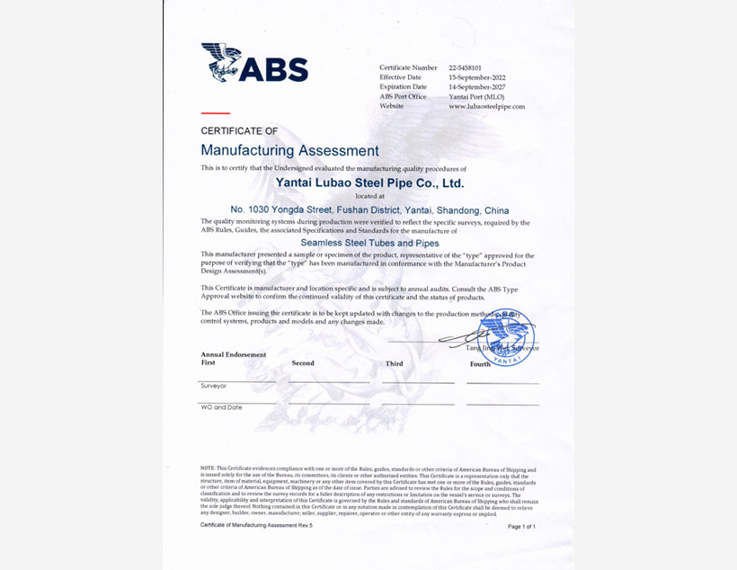 美國石油協(xié)會API 5CT認(rèn)證????|????美國石油協(xié)會API 5L認(rèn)證????|????TS(特種設(shè)備生產(chǎn)許可)????|????ABS PDA(美國船級社設(shè)計評估)認(rèn)證????|????ABS MA(美國船級社工廠評估)認(rèn)證????|????DNV(挪威船級社)認(rèn)證 ????|???? CCS(中國船級社)工廠認(rèn)可????|????? LR(勞氏船級社)認(rèn)證????|????? PED(歐盟承壓設(shè)備指令)認(rèn)證????|??? CPR(歐盟建筑用材料指令)認(rèn)證????| JIS(日本工業(yè)標(biāo)準(zhǔn))認(rèn)證